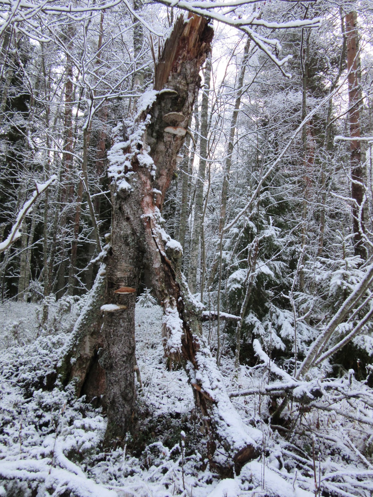 Kääpä paistaa puun rungossa kuin kaamea punainen naama. Musta hyypiö näyttää vaanivan puun oksalla, ja koivun takana on piilossa joku. - Näin mielikuvitus loihtii kauheuksia. Tien vieressä näyttää seivovan jättiläinen, vaikka tietää, että se on pihlajanjäännös.